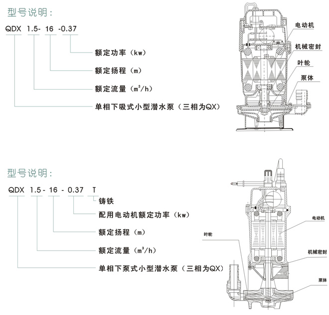 四、QDX型系列塑料潛水泵型號/結(jié)構(gòu)
